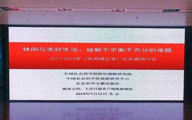 2018年7月13日,由中國社會科學院財經戰略研究院、中國社會科學院旅游研究中心與社會科學文獻出版社共同主辦的,“休閑與美好生活:破解不平衡不充分的難題——《休閑綠皮書:2017—2018年中國休閑發展報告》發布暨研討會”在京舉辦。