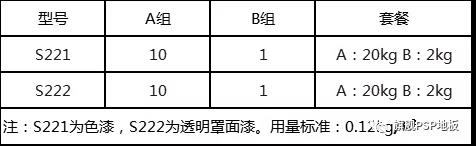 (注:配比要求S221、S222:A:B=10:1,既A 20kg,B 2kg為一組)。