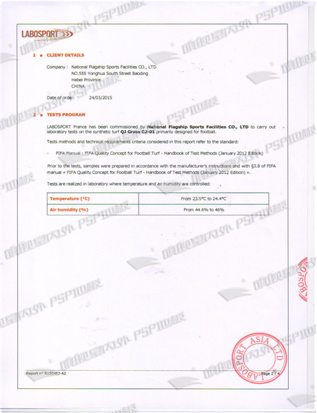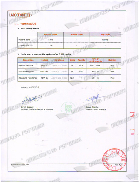 人造草坪LABOSPORT檢測報告 |
